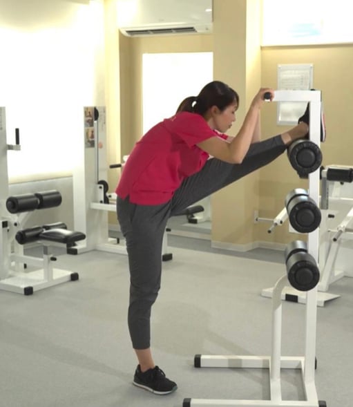 ひざ関節の可動域を広げる動作により、ひざの動きや痛みを改善します。またO脚の改善にも効果的です。